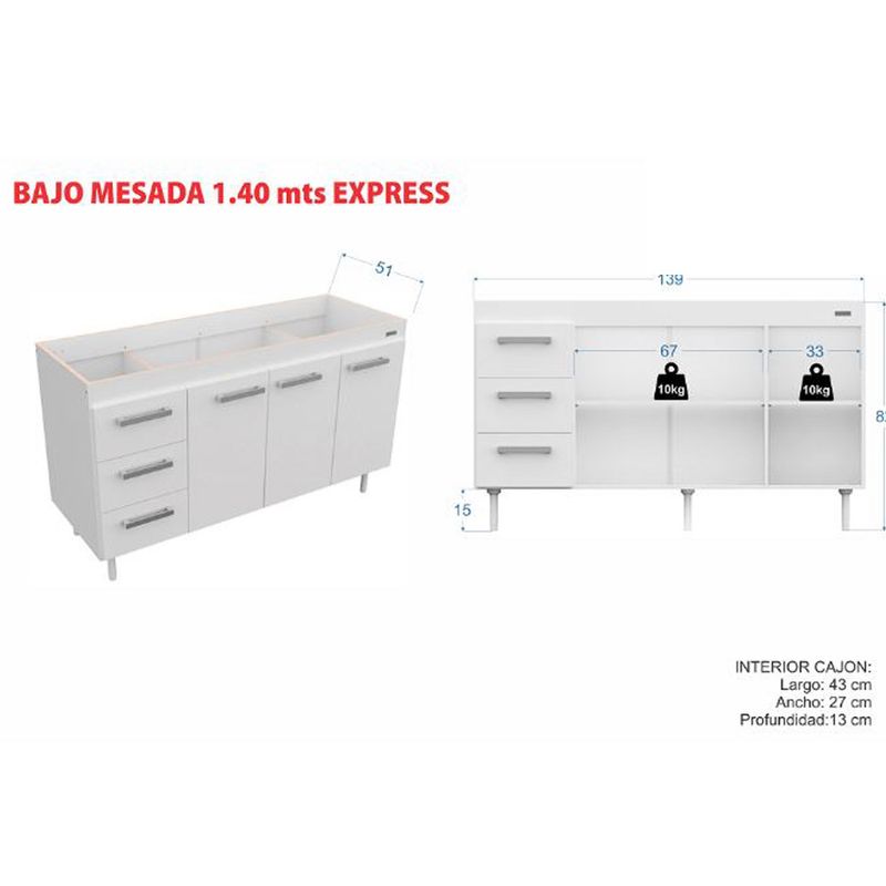 Bajo Mesada De Cocina de 1.40mts Linea Espress de Melamina