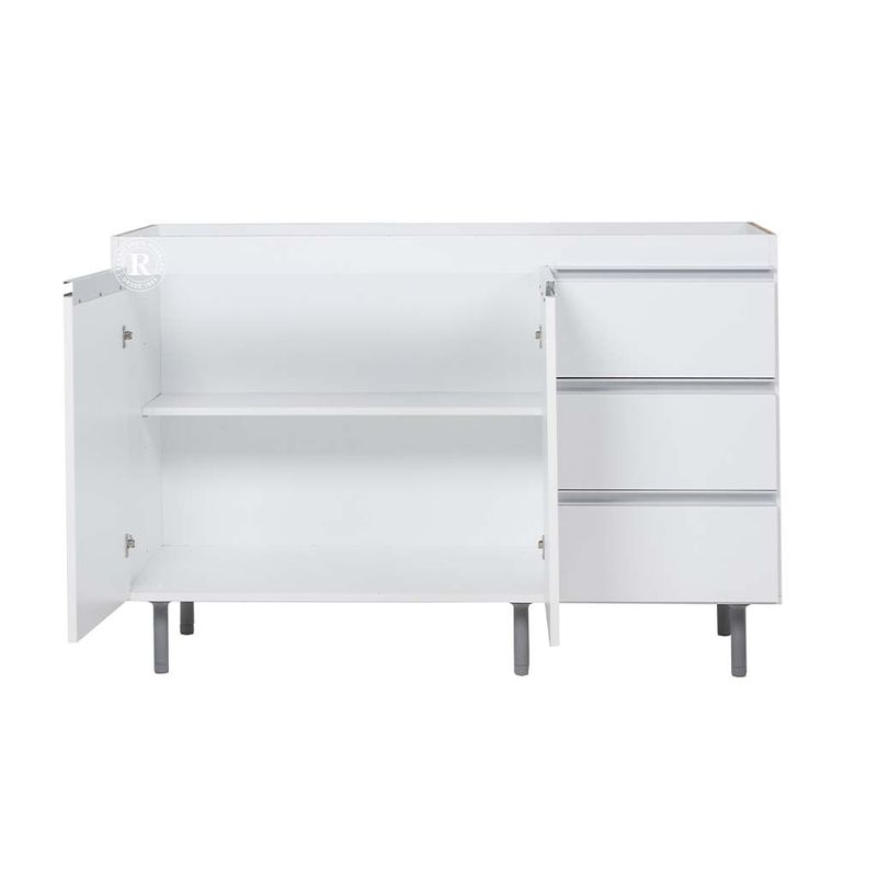 El bajo mesada arco tiene una terminacion con perfil J de aluminio que queda muy elegante y facilita la apertura de puertas y cajones. A su vez, da la posibilidad de armar cajonera en extremo izquierdo o derecho