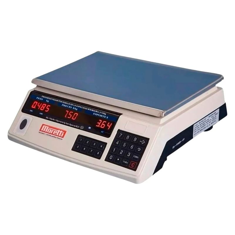 Balanza Comercial Moretti 15 kg – Precisión, confiabilidad y rendimiento profesionalLa balanza comercial Moretti es la aliada ideal para comercios que necesitan pesar con exactitud, rapidez y seguridad. Diseñada para uso intensivo, ofrece alta precisión desde 5 gramos hasta 15 kg, con una estructura robusta, plataforma amplia y pantalla LCD clara que facilita la lectura. Su funcionamiento práctico y confiable la convierte en una herramienta indispensable para negocios que buscan eficiencia en cada operación.