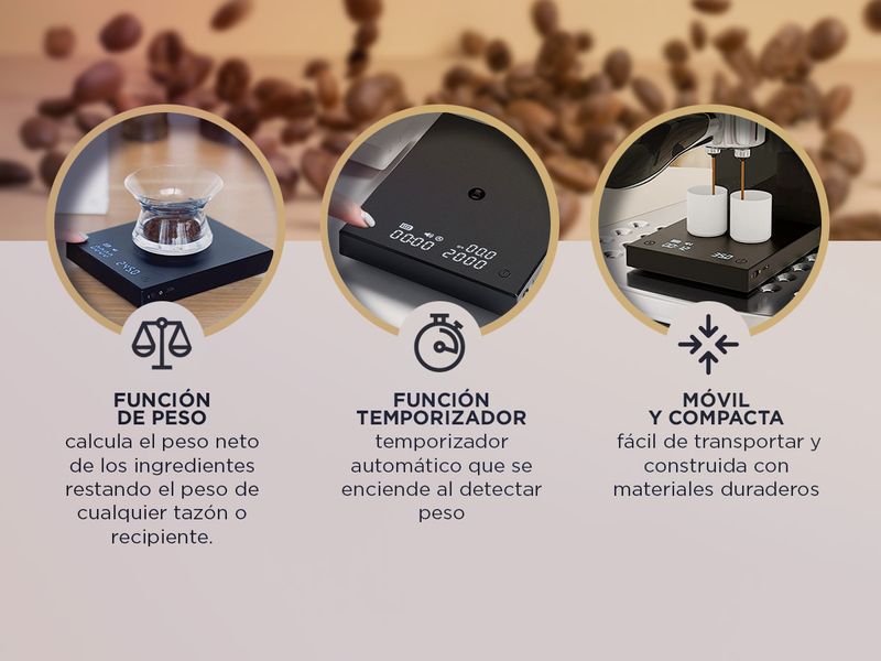 Precisión en el Pesaje: Equipado con una plataforma de pesaje de alta precisión, garantiza mediciones exactas de café y agua, permitiéndote reproducir tus recetas favoritas con consistencia.