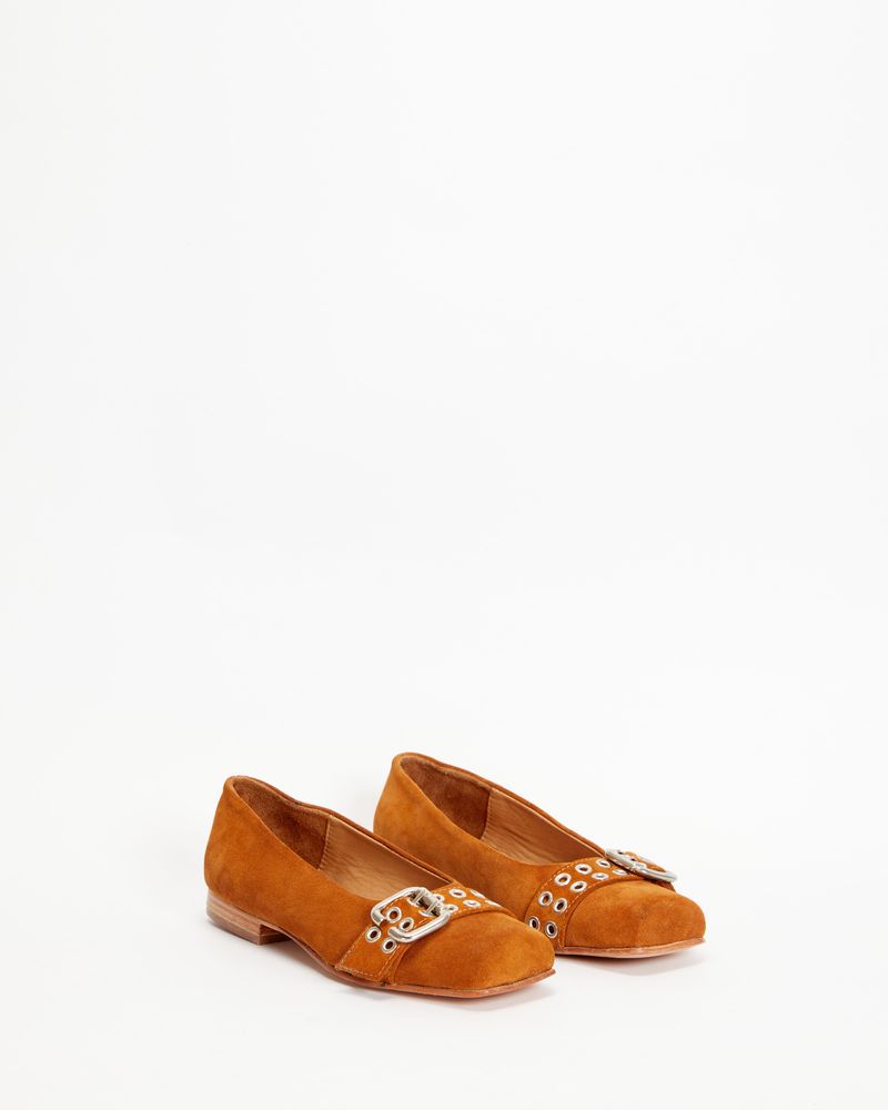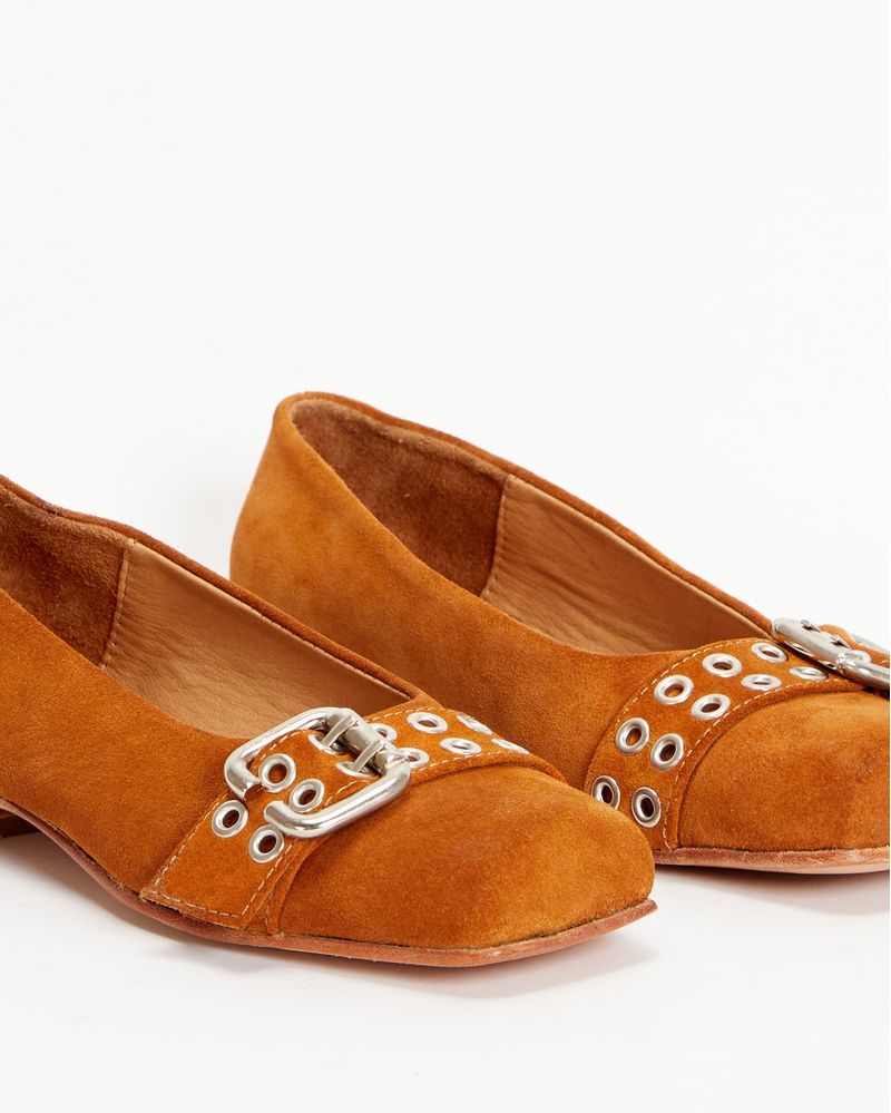 Ballerinas confeccionadas en cuero gamuzado. Su forro interno y su suelín también son vacunos.Los materiales utilizados en la confección del producto alcanzan los estándares de calidad más altos.