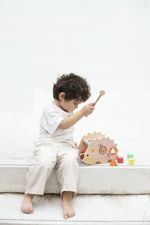 Mira este lindo banco de erizo. Golpea la pelota por los agujeros y crea melodías únicas. También puedes sacar el xilófono para tocar solo. En el lateral, los niños pueden aprender diferentes formas con el clasificador.