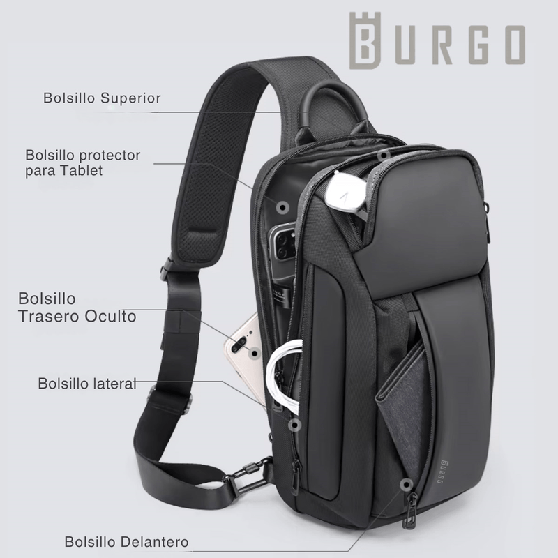 Bandolera urbana de 8 litros con diseño moderno y funcional. Material impermeable, bolsillo antirrobo oculto y correa ajustable para máxima comodidad. Ideal para uso diario, viajes y actividades urbanas.