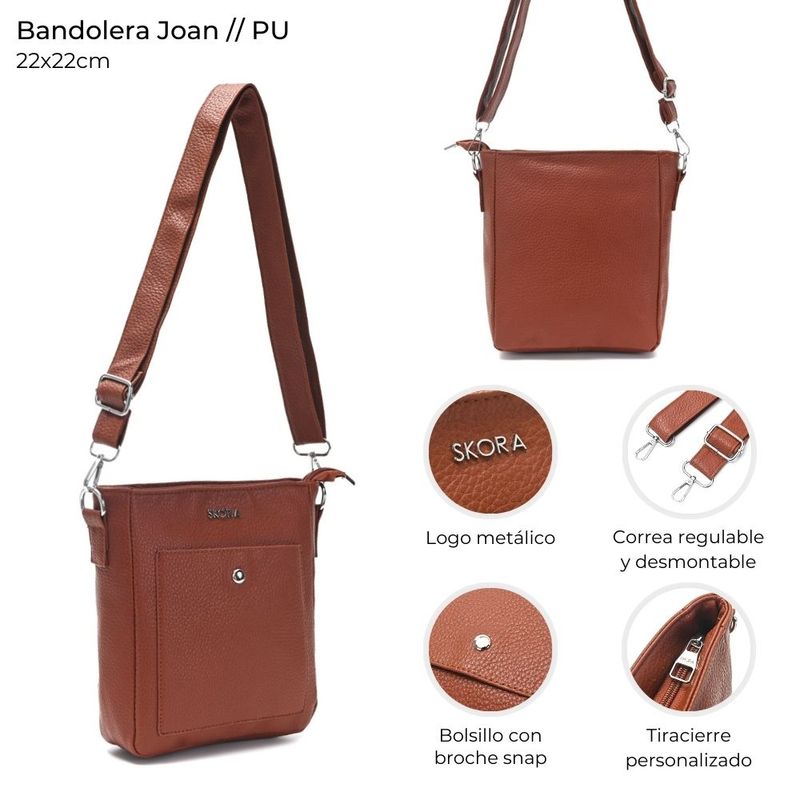 La bandolera Joan es el accesorio perfecto para complementar tu estilo, combinando diseño y practicidad. Con espacio suficiente para llevar lo esencial y un acabado elegante, se adapta tanto a tus looks diarios como a ocasiones especiales, convirtiéndose en un infaltable en tu guardarropa.
