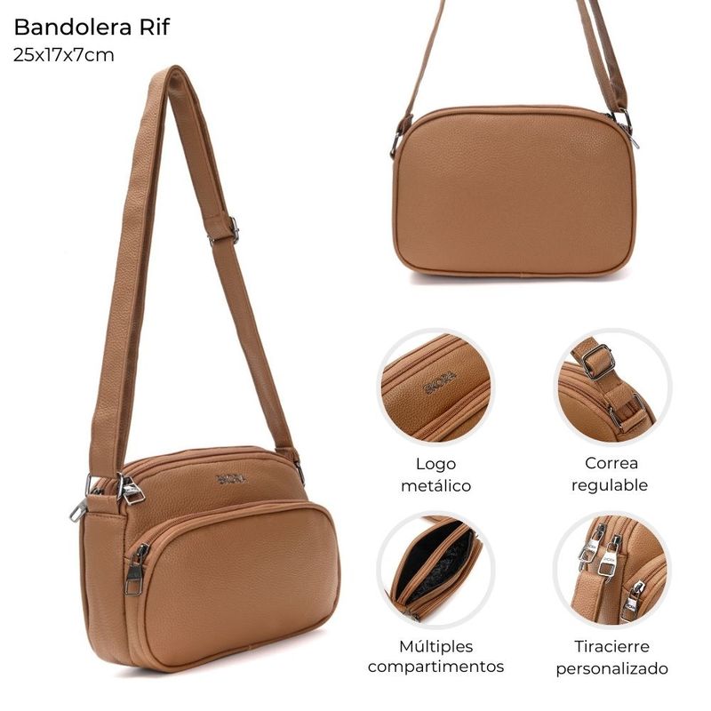 La bandolera Rif es el accesorio perfecto para complementar tu estilo, combinando diseño y practicidad. Con espacio suficiente para llevar lo esencial y un acabado elegante, se adapta tanto a tus looks diarios como a ocasiones especiales, convirtiéndose en un infaltable en tu guardarropa.