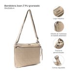 La bandolera Joan es el accesorio perfecto para complementar tu estilo, combinando diseño y practicidad. Con espacio suficiente para llevar lo esencial y un acabado elegante, se adapta tanto a tus looks diarios como a ocasiones especiales, convirtiéndose en un infaltable en tu guardarropa.