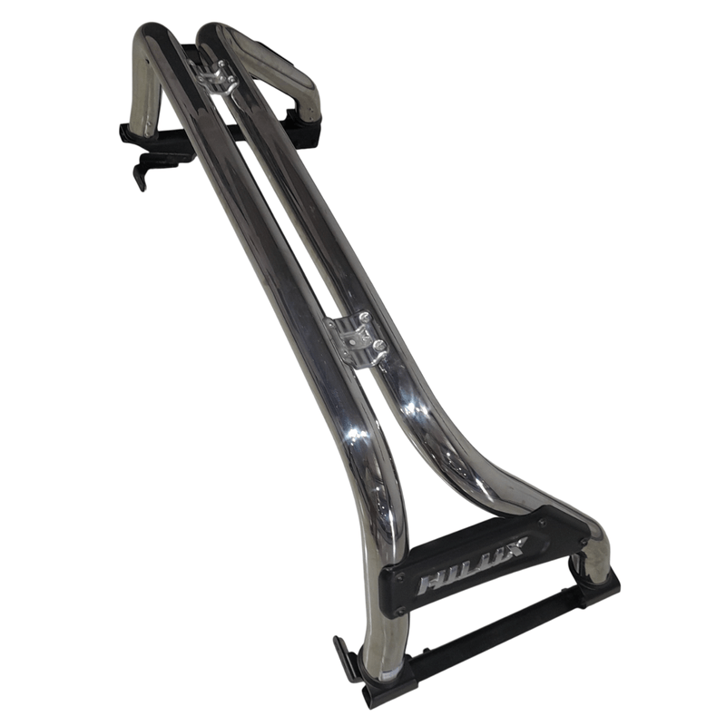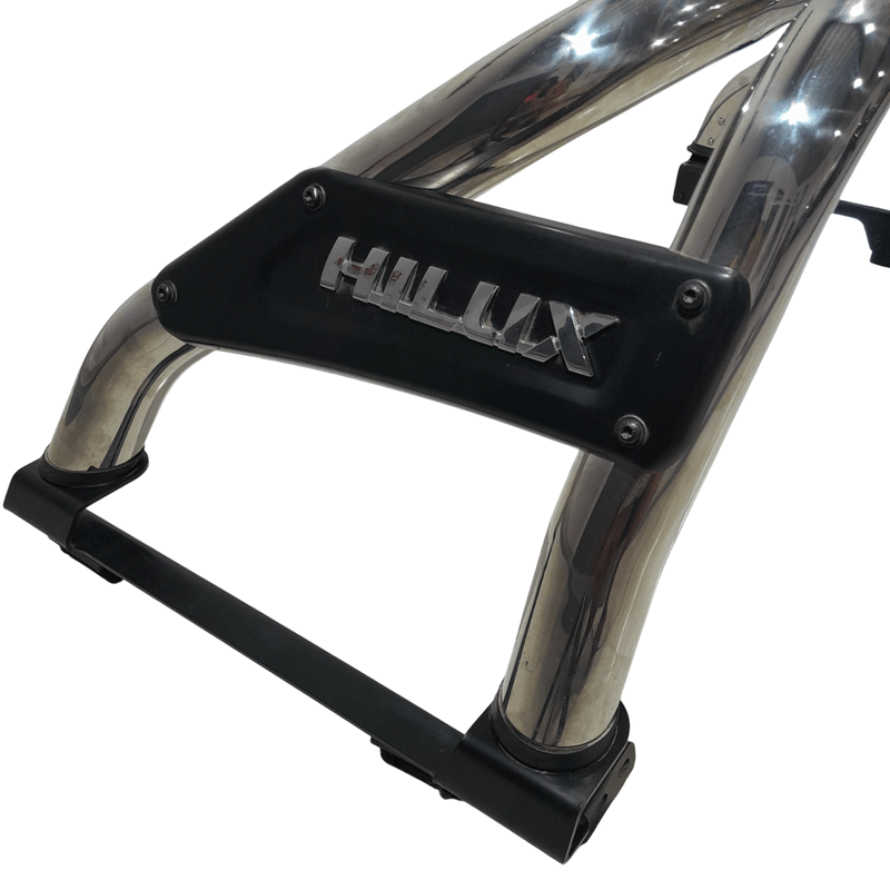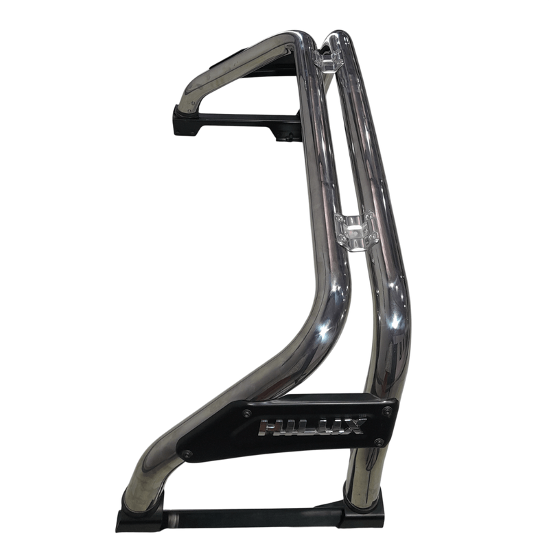 La barra cromada brinda un aspecto robusto y protección adicional a tu camioneta Toyota Hilux. Construida en acero inoxidable, ofrece un acabado premium y duradero. Permite instalar faros auxiliares y otros accesorios. Incluye herrajes de montaje y es de fácil instalación.