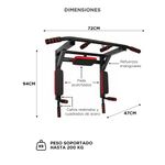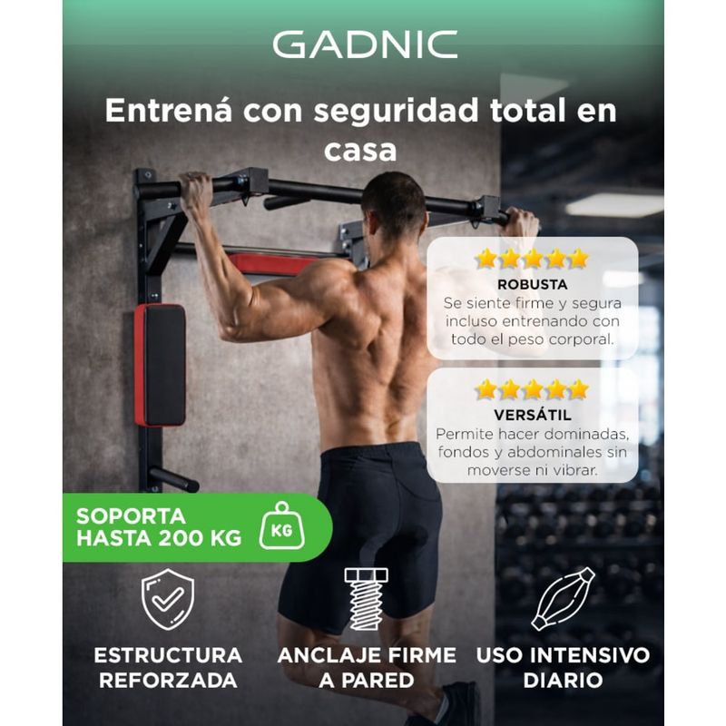 La barra de dominadas Gadnic soporta hasta 200 kg gracias a su estructura de acero reforzado.
