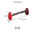 La barra se adapta a la mayoría de puertas y pasillos. Su sistema de extensión suave permite obtener la medida exacta, mientras el indicador de nivel integrado asegura una instalación precisa y segura en segundos.