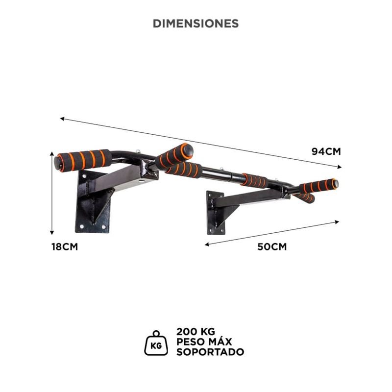 La barra de dominadas pared FITNES706 soporta hasta 200 kg gracias a su estructura de acero reforzado. Brinda estabilidad real para entrenamientos exigentes en el hogar.
