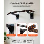 Diseñada para instalación en pared sólida, incluye placas metálicas y herrajes que aseguran un anclaje estable. Ideal para entrenar sin movimientos ni vibraciones.
