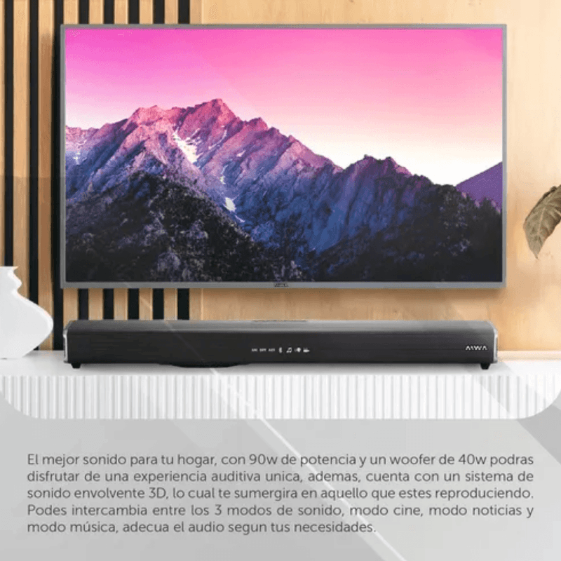 Llevá el cine a tu living. La Barra de Sonido AIWA AW-BS780N transforma cada película, serie o canción con un audio envolvente y potente. Su diseño elegante y su conectividad versátil hacen que disfrutar de un sonido de calidad sea más fácil que nunca.