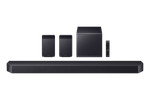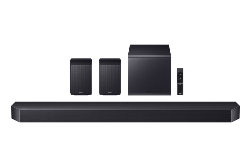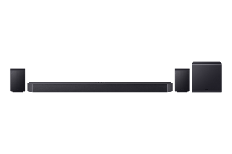 Transformá tu experiencia audiovisual con la barra de sonido Samsung Q990F, equipada con un potente sistema de 23 parlantes distribuidos en una configuración real 11.1.4 canales, incluyendo subwoofer inalámbrico y altavoces traseros con efectos de altura. Con una potencia RMS total de 756 W, ofrece un sonido envolvente de nivel cinematográfico gracias a tecnologías como Dolby Atmos inalámbrico, DTS:X y Q-Symphony, que sincroniza perfectamente con TVs Samsung. Su calibración automática SpaceFit Sound adapta el audio a la acústica de tu sala para lograr un rendimiento superior en todo momento.