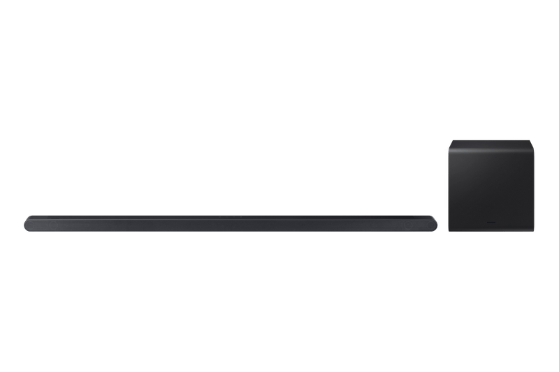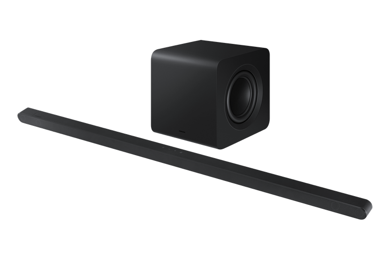 La barra de sonido Samsung HW-S800D Serie S801D ofrece una experiencia de audio envolvente con su configuración 3.1.2 canales y tecnología Dolby Atmos inalámbrica. Cuenta con diez parlantes integrados y un subwoofer inalámbrico que proporciona graves profundos y potentes para un sonido equilibrado y claro. El altavoz central garantiza una excelente claridad en los diálogos, mientras que funciones como SpaceFit Sound ajustan automáticamente el audio según el ambiente.
