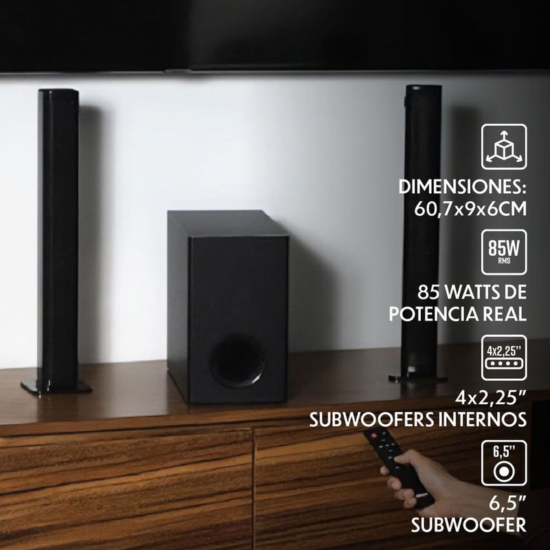 - Configuración: Barra de sonido dual (divisible en dos torres)