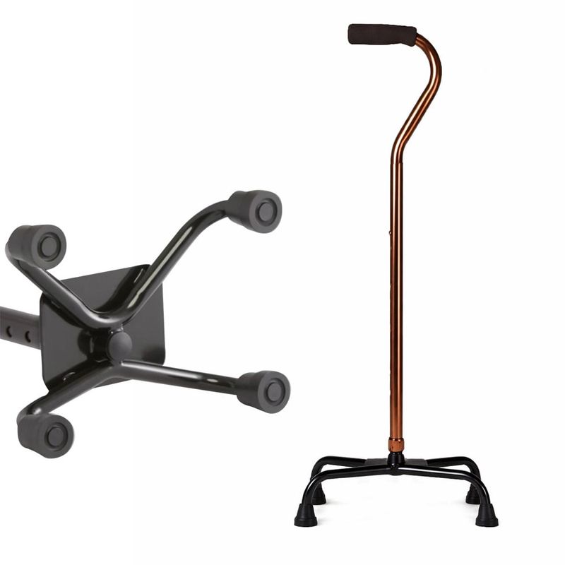 La base cuádruple distribuye mejor el peso corporal, ayudando a prevenir deslizamientos y aportando mayor control en cada paso.