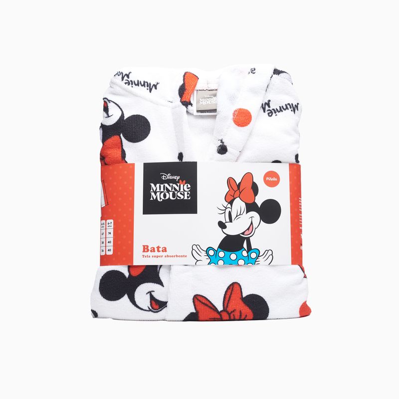 "Nuestras batas de baño son ideales para después de la ducha, al salir de la pile o simplemente para estar cómodos y abrigados en casa antes de ir a la cama. Características del producto: • Capucha espaciosa para una calidez total. • Cinturón para un mejor ajuste Con diseños súper coloridos con sus personajes favoritos de Minnie Tienen una máxima absorción y secado rápido