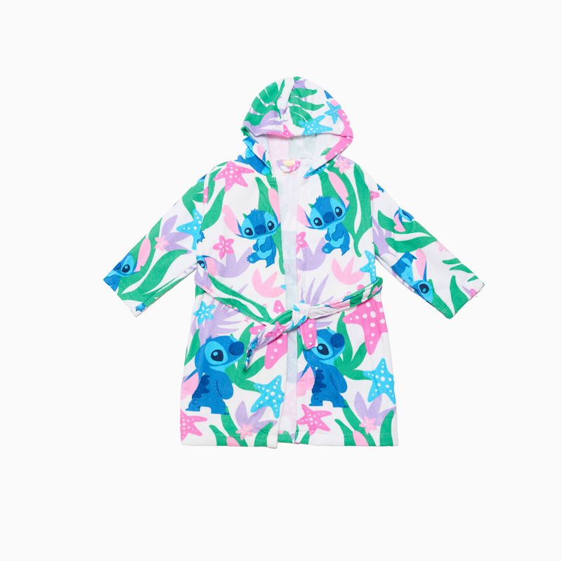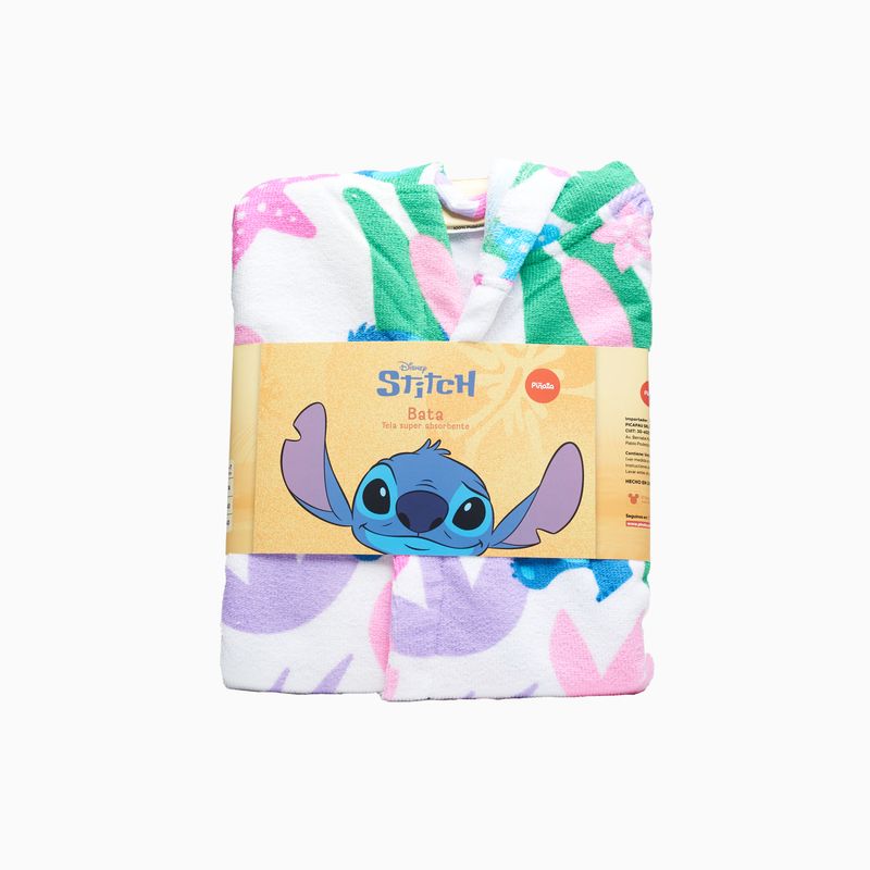 "Nuestras batas de baño son ideales para después de la ducha, al salir de la pile o simplemente para estar cómodos y abrigados en casa antes de ir a la cama. Características del producto: • Capucha espaciosa para una calidez total. • Cinturón para un mejor ajuste Con diseños súper coloridos con sus personajes favoritos de Stitch Tienen una máxima absorción y secado rápido