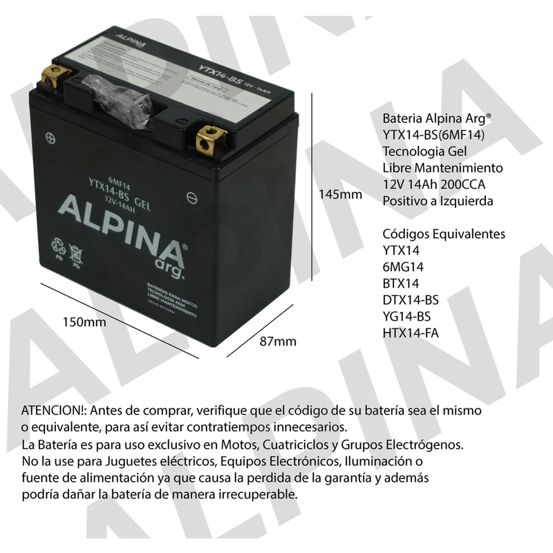 Bateria Alpina Ytx14-bs Gel Bmw F650gs F800gs R1200gs Africa