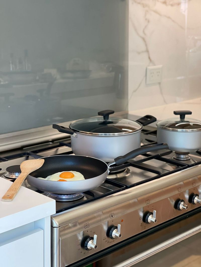 Batería de cocina en Aluminio reciclado revestida con Antiadherente marca compuesta por :