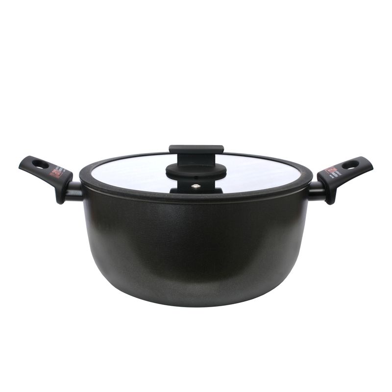 Aluminio puro 99,5%, espesor 3,5 mm / 4mm , forjado para una perfecta difusión del calor y una mejor cocción de los alimentos.