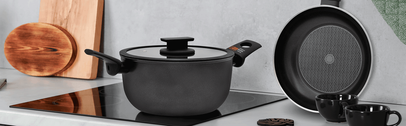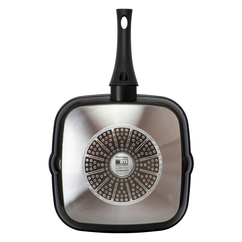 Cuerpo de Aluminio puro 99,5%, aleación 4006, espesor 4 mm, forjado para una perfecta difusión del calor y una mejor cocción de los alimentos.