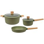 La Batería de Cocina de Aluminio de 5 piezas Olive OLI01 de la reconocida marca Hudson combina diseño moderno, eficiencia y practicidad para cocinar todos los días. Ideal para cocinas con parrillas de inducción, gas o eléctricas , esta batería ofrece una experiencia culinaria superior gracias a sus materiales de alta calidad y acabados funcionales.