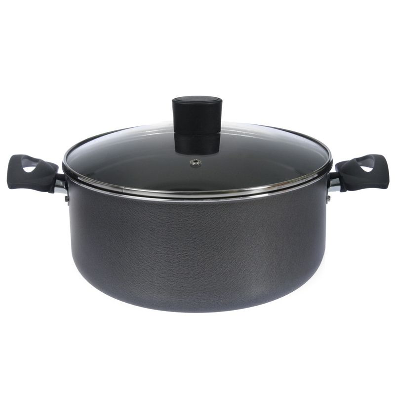 Cacerola 20 cm con tapa de vidrio templado con orificio para salida de vapor, 1,6 mm de espesor. Altura de olla : 10.5 cms / Capacidad : 2,8 lts