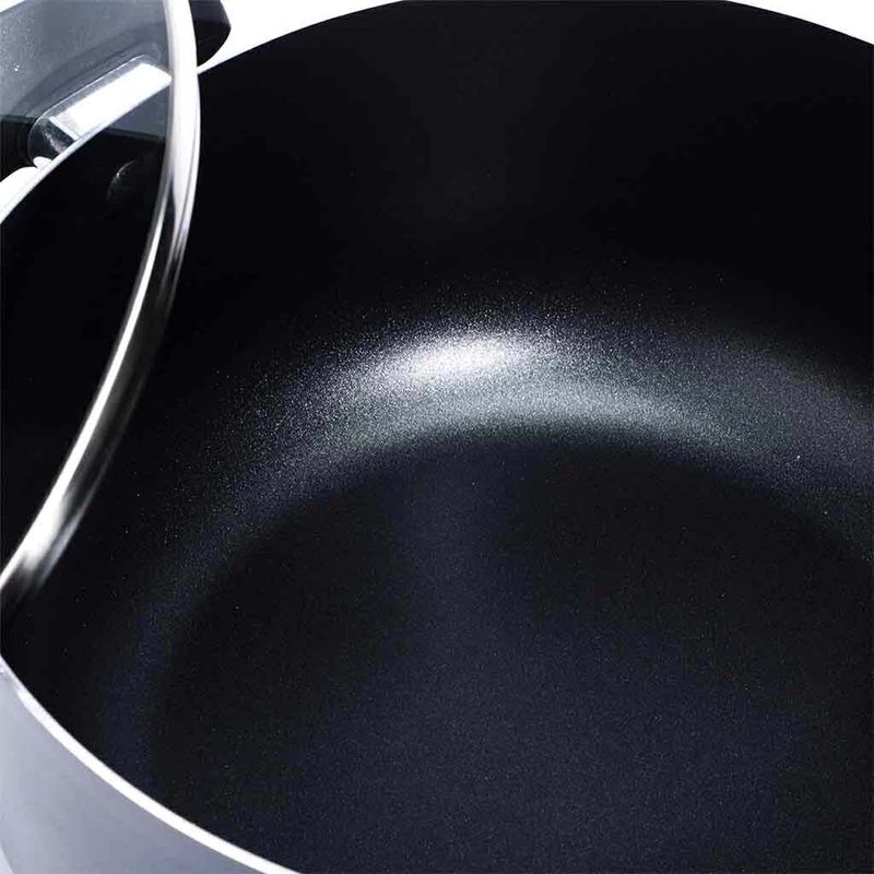 ¡Dale un toque moderno a tu cocina! Con la bateria selecta de cocina de 3 piezas ¡Cocinar será un placer! - 1 sartén: 24 cm × 4,4 cm de aluminio de 1,8 mm de espesor. - 1 cacerola: 18 cm × 8,5 cm de aluminio de 2 mm, con mango y tapa de vidrio templado con escape de vapor. - 1 olla: 24 cm × 11 cm de aluminio de 2 mm, con asas y tapa de vidrio templado con escape de vapor.