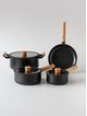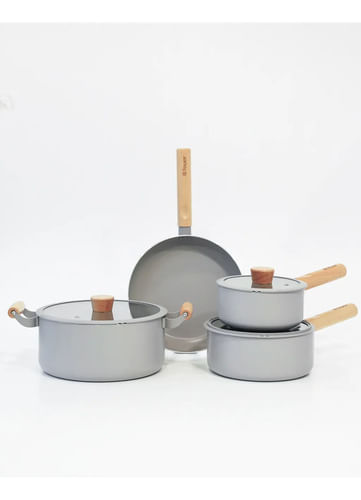 Contenido: 1 cacerola de 24 cm de diámetro, 2 cacerolas con mango de 16 cm y 20cm de diámetro y 1 sartén de 24 cm de diámetro
