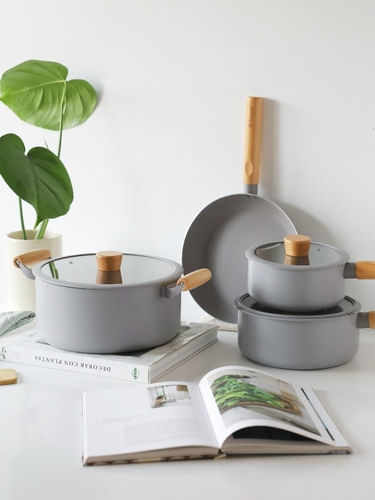 ¡Dale un giro a tu cocina con el Juego de Batería de Cocina Noble 7 piezas con mango de madera de Feuer! Este set es ideal para quienes buscan calidad y estilo en cada plato. Con cacerolas y sartén de diseño elegante, disfrutarás cocinar todo tipo de alimentos con facilidad y sin que se peguen. Su recubrimiento antiadherente y los mangos de madera no solo brindan comodidad, sino que también le aportan un toque rústico a tu cocina.