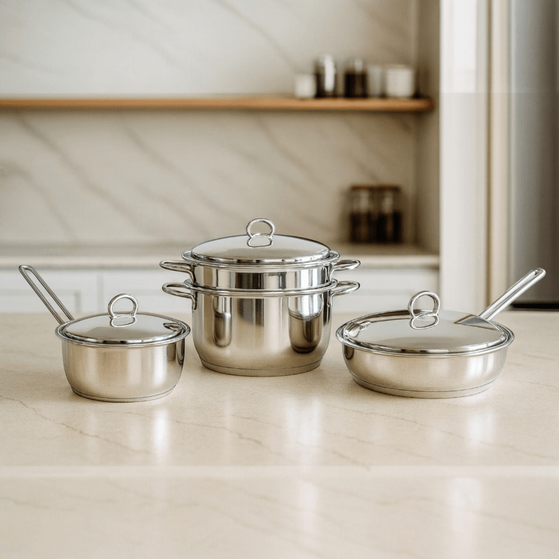 Este set de acero inoxidable 18/10 es ideal para quienes buscan calidad, durabilidad y versatilidad en su cocina. Con tres piezas esenciales, podés cocinar de todo, desde salteados hasta pastas y salsas, con la seguridad de que tus alimentos se mantendrán libres de toxinas y con su sabor puro.