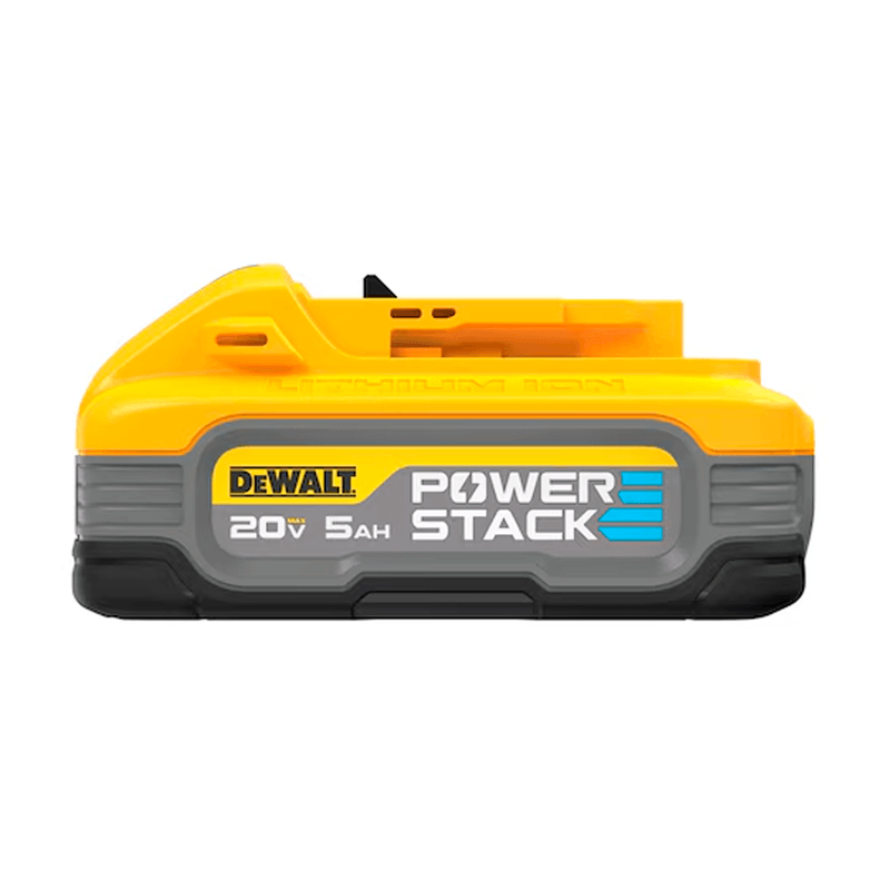 Nuestra batería más poderosa en su clase**, la batería 20V MAX* DEWALT POWERSTACK™ 5.0 Ah utiliza tecnología revolucionaria de celdas planas para brindar 50% más