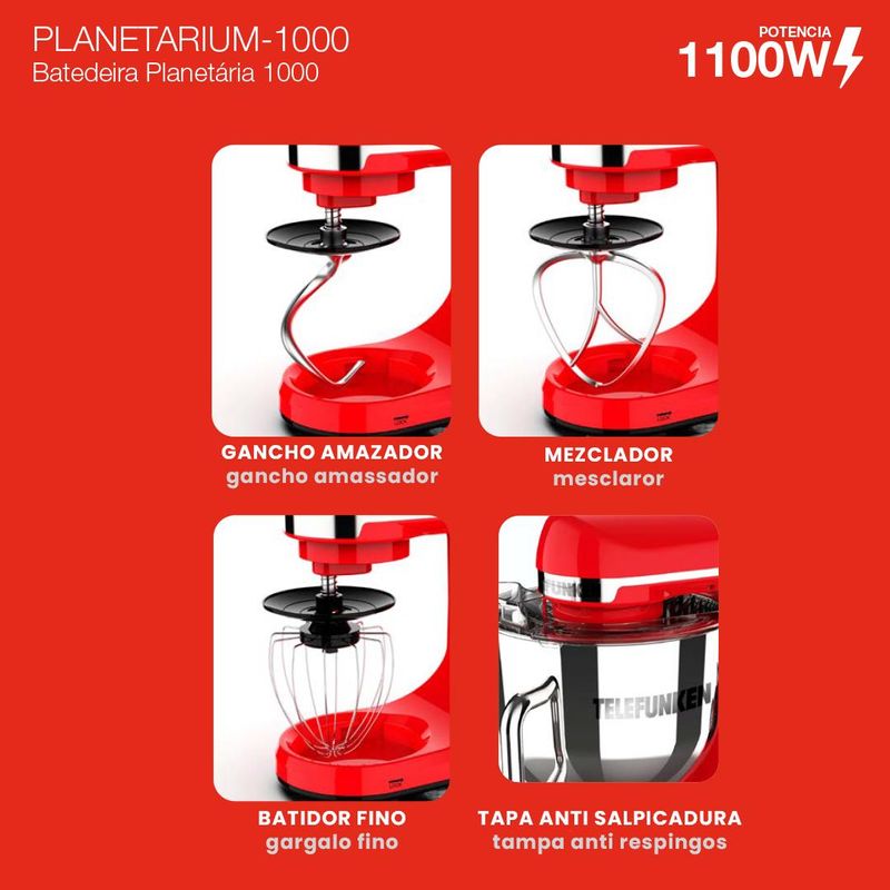 La Batidora de Pie Planetaria Telefunken 1000 3 en 1 Roja es la herramienta ideal para los amantes de la cocina que buscan calidad y eficiencia. Con una potencia de 1100 W, esta batidora es perfecta para masar, mezclar y batir, facilitando la preparación de una amplia variedad de recetas. Su diseño planetario asegura una mezcla homogénea, mientras que sus seis velocidades permiten un control preciso en cada tarea.