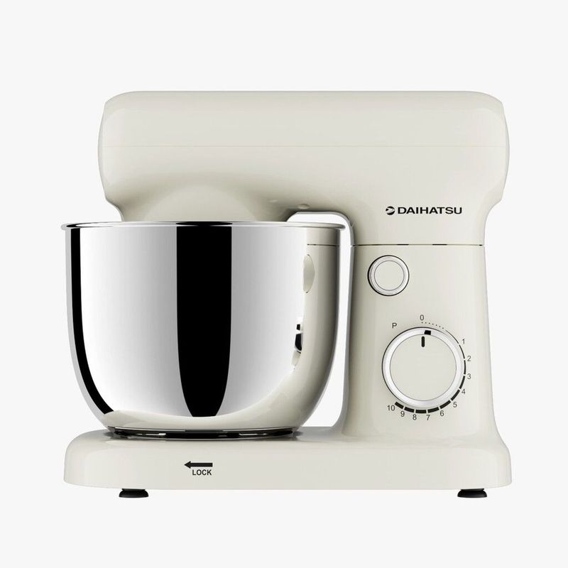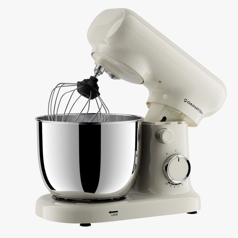 La batidora planetaria Daihatsu PM11075 en color crema combina alto rendimiento, versatilidad y un diseño elegante que realza cualquier cocina. Equipada con un potente motor de 1100 W y sistema de rotación planetaria, permite obtener mezclas homogéneas y precisas en menos tiempo, ideal para masas pesadas, panes, tortas, cremas, merengues y preparaciones de pastelería. Su estética crema aporta un estilo cálido y sofisticado, perfecto para cocinas modernas, nórdicas o de inspiración retro.