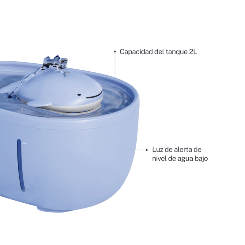 Ventajas: Con el Bebedero Automático Ballenita, no solo ofreces agua fresca a tu mascota, sino que también contribuyes a su salud y bienestar. Su diseño moderno se adapta a cualquier espacio y facilita su mantenimiento.
