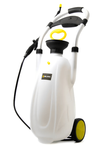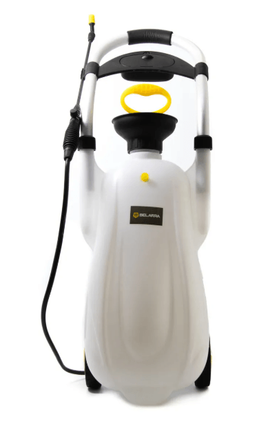 ¡Optimice sus tareas de fumigación y limpieza con el Belarra Pulverizador 16Lt! Esta herramienta manual es la solución ideal para aplicar fungicidas, insecticidas, alcohol líquido, lavandina y mucho más. Su diseño versátil cuenta con prácticas ruedas de plástico con eje de acero reforzado y un asa para facilitar su transporte sin esfuerzo, eliminando la necesidad de cargarlo en la espalda como los modelos tipo mochila convencionales. Construido íntegramente en plástico de alta durabilidad y material anticorrosivo, garantiza una larga vida útil y resistencia a diversos químicos. Con una capacidad útil de 16 litros y un sistema de presión manual a palanca, es perfecto para tratamientos de plantas en macetas, cultivos de balcón o pequeños trabajos de desinfección en el hogar.