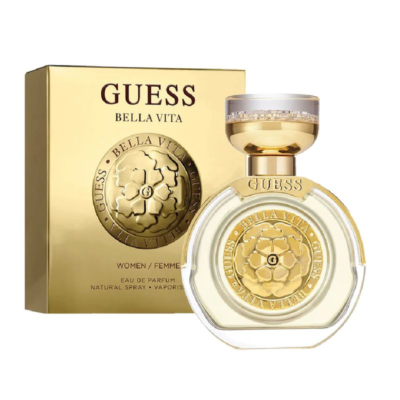 Bella Vita de Guess es una fragancia de la familia olfativa floral frutal gourmand para mujeres. Las Notas de salida son cereza ácida (guinda),