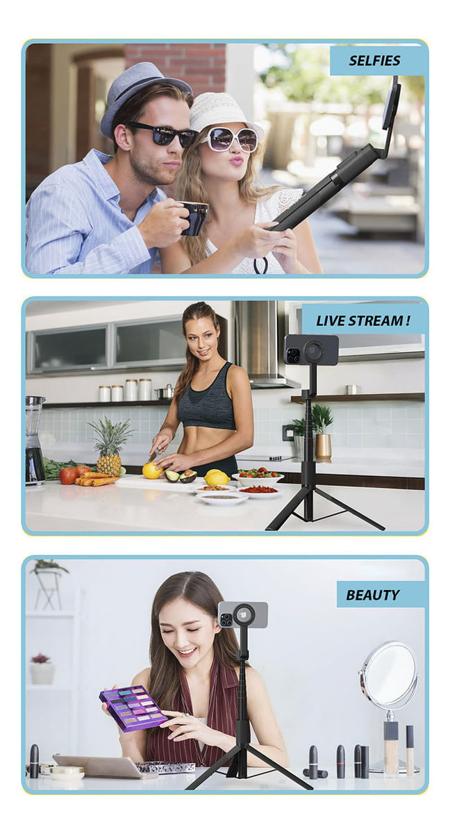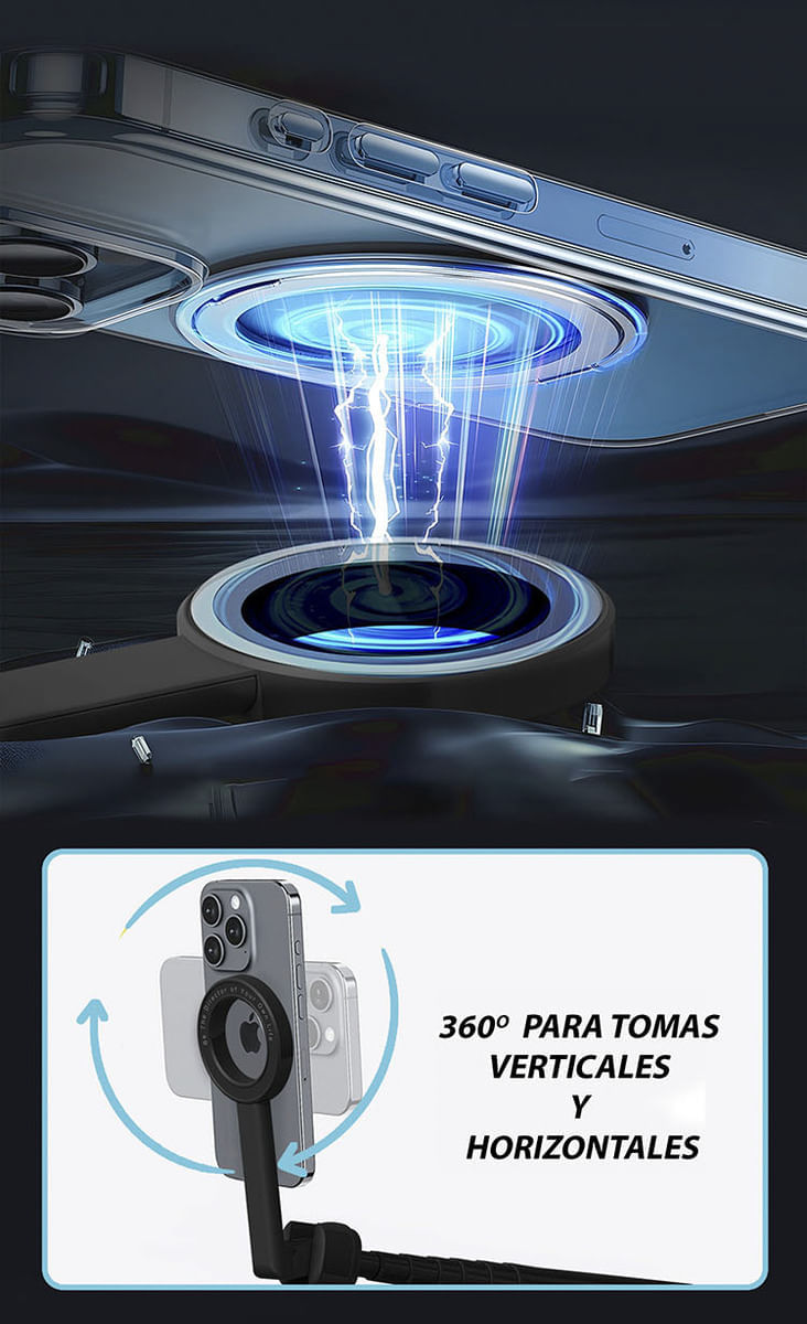 Trípode Magnético para Celular compatible con todos los Smartphones con tecnología MagSafe o con fundas especiales de aro magnético