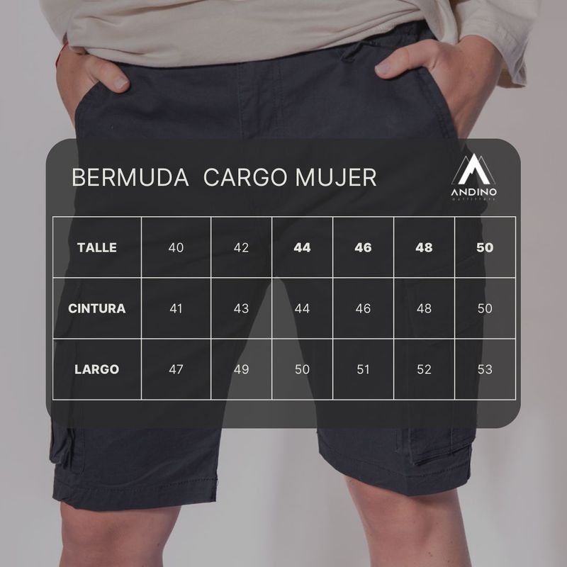 Bermuda liviana de gabardina estilo cargo de secado rápido, ideal para aquellos que disfrutan de la comodidad y el estilo en su día a día. Con amplios bolsillos en los laterales y en la parte trasera, esta prenda es perfecta tanto para el uso urbano como para actividades de trekking.