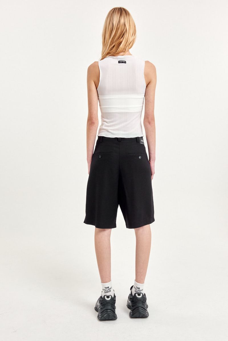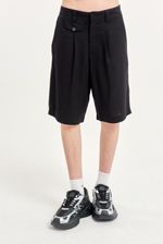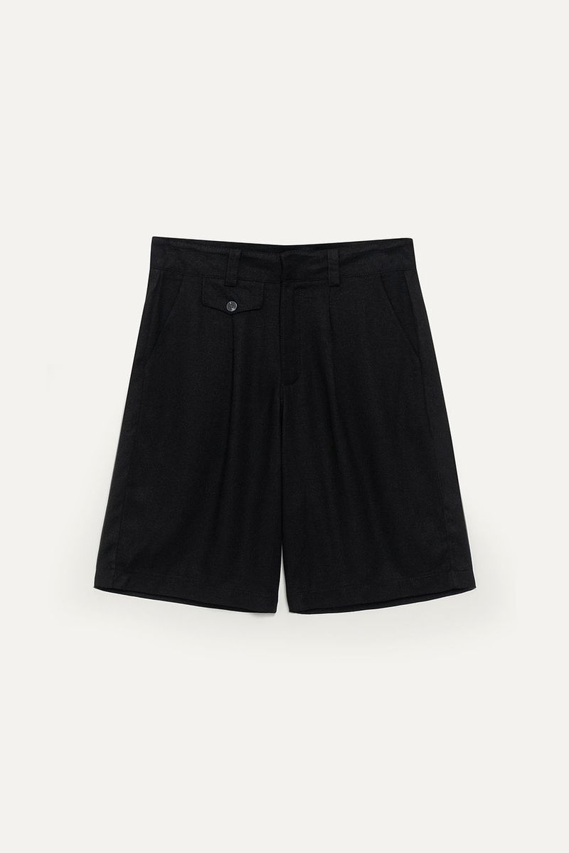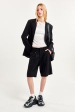 Bermuda sastrera de lino mezcla, tiro medio relajado con pinzas delanteras y bolsillos laterales. Lleva vistas de bolsillos simuladas en la espalda y botón de pasta marmolado, más etiqueta de línea exclusiva de sastreria. Ideal para combinar con camisas frescas y sandalias.