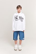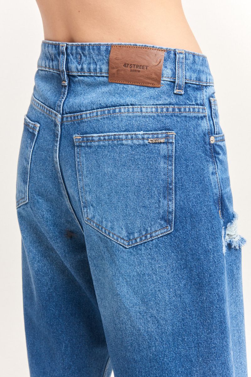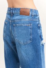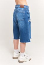 Bermuda de denim rígido 100% algodón 5 bolsillos. Calce relajado y tiro medio. El lavado es azul oscuro gastado con roturas, al ser artesanal pude variar de una prensa a otra.