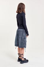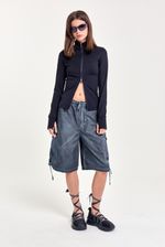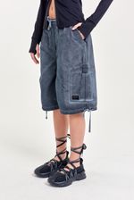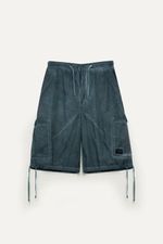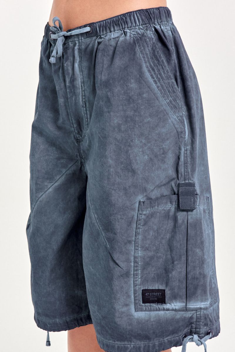 Bermuda de gabardina con terminación washed, cintura elástica con cordón regulable, pinzas delanteras, bolsillos laterales con tapa y cordón en el bajo. Incluye accesorios personalizados de la marca que refuerzan su estilo único. Ideal para outfits relajados, combinando con remeras estampadas o chalecos livianos.