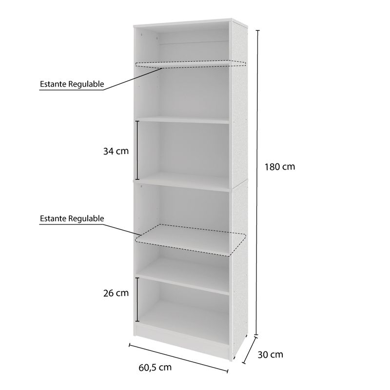 Dimensiones: 180 x 60 x 30 cm (Alto x Ancho x Prof.)