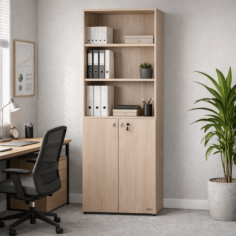 La biblioteca 530, es parte de la nueva línea de Oficina. Tiene 2 puertas de abrir, estantes regulables y cerradura.