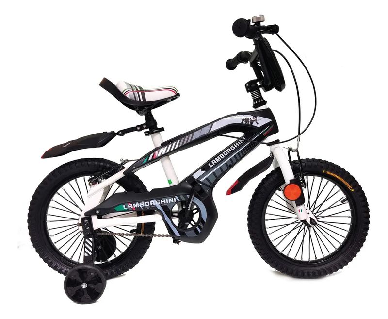 La Bicicleta Lamborghini R16 Carrozada en Negro y Blanco es la opción perfecta para los pequeños aventureros. Diseñada especialmente para niños, su estilo moto carrozada garantiza diversión y seguridad en cada paseo. Con un cuadro robusto de metal y plástico, esta bicicleta es ideal para el uso diario. Sus ruedas de goma ofrecen un excelente agarre, mientras que los frenos V Brakes aseguran paradas seguras. El asiento de simil cuero es regulable en altura, adaptándose al crecimiento de los niños. Además, cuenta con agarraderas de manubrio de goma para un mejor agarre y un canasto delantero de plástico para llevar sus pertenencias. Las rueditas de aprendizaje son extraíbles, facilitando la transición a la conducción independiente. Con un peso máximo soportado de 35 kg, esta bicicleta es perfecta para niñas y niños. ¡Haz que cada paseo sea una aventura inolvidable!