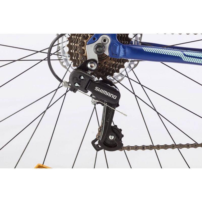 Transmisión Shimano: Equipada con cambios y descarrilador Shimano de 21 velocidades, junto con shifters Shimano TX30, asegurando pasos de marcha precisos y fluidos en cualquier pendiente.