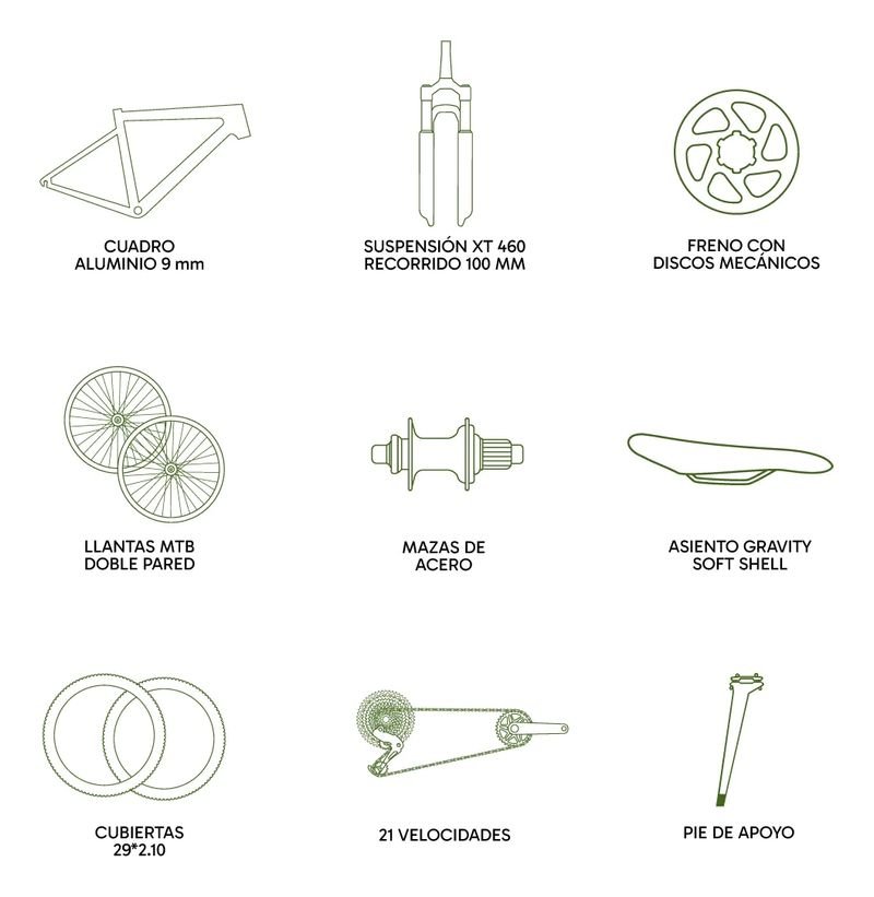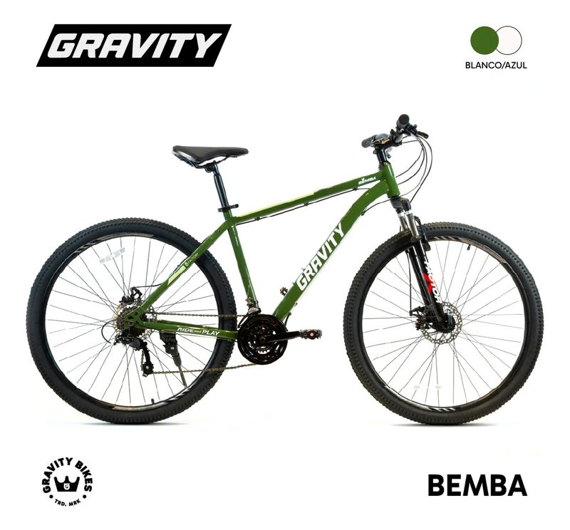 La Bicicleta Gravity Bemba R29 es la opción ideal para los amantes de la aventura y el ciclismo de montaña. Con un robusto cuadro de acero y un rodado de 29", proporciona resistencia y estabilidad en cada recorrido. Equipado con frenos de disco a cable, garantiza una detención eficiente, mientras que los cambios Saiguan permiten una experiencia de pedaleo fluida con 21 velocidades. Su manubrio recto y llantas de doble pared ofrecen un control excepcional en terrenos irregulares. Además, cuenta con un pie de apoyo práctico para facilitar su estacionamiento. Diseñada para jóvenes ciclistas, esta bicicleta es perfecta para explorar nuevos caminos y vivir emocionantes aventuras al aire libre. ¡Atrévete a pedalear con estilo y seguridad!