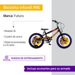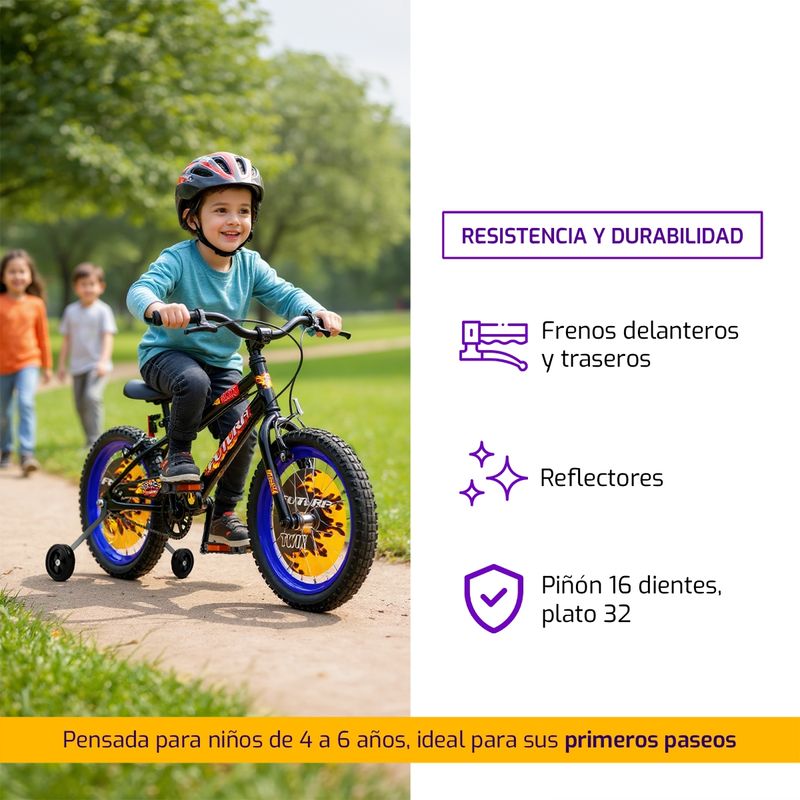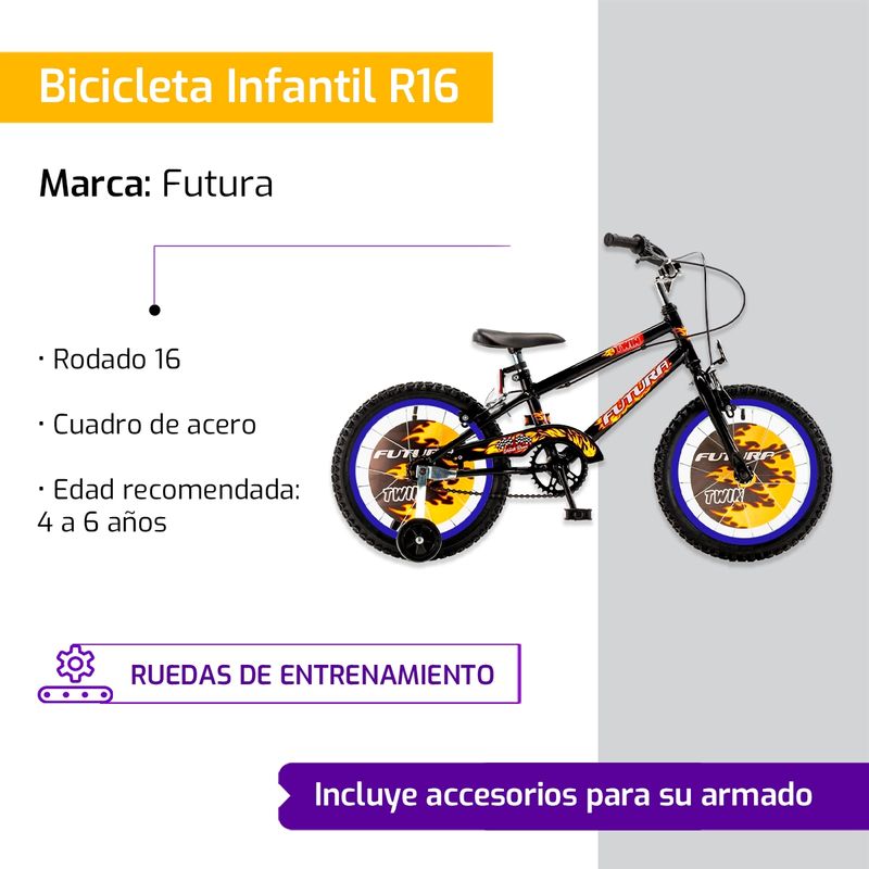 Bicicleta Infantil R16 Con Rueditas Futura Twin Rojo