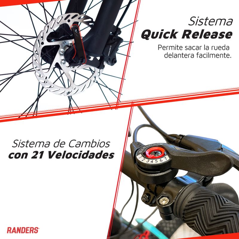 o Ruedas 29” con llanta doble pared, mazas con Quick release de Aluminio.